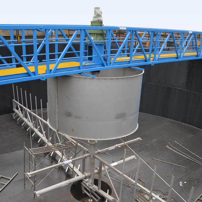 中心傳動(dòng)懸掛式濃縮機(jī)適用于中心進(jìn)水、周邊出水、中心排泥的中小型池徑的沉淀池,主要用于工業(yè)廢水處理和城鎮(zhèn)污水處理項(xiàng)目的沉淀池排泥。