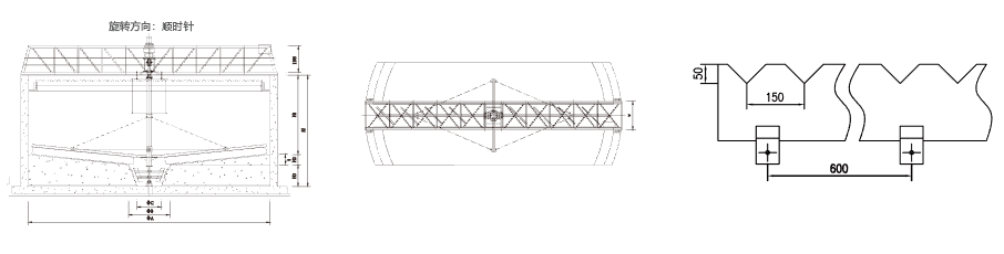 可選:提耙機(jī)構(gòu)、浮渣撇除裝置、 V型出水堰板等。